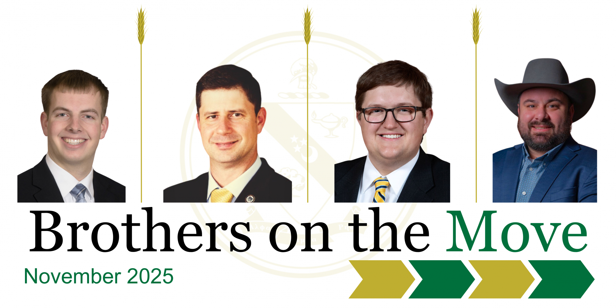 Brothers Austin Beitlich (Beta Gamma Chapter), Quinn Holland (Alpha Delta Chapter), Mike Mayfield (Alpha Kappa Chapter), Jaye Hamby (Alpha Kappa Chapter) and more have been on the move in their careers and education. See what your chapter brothers have been up to this June!