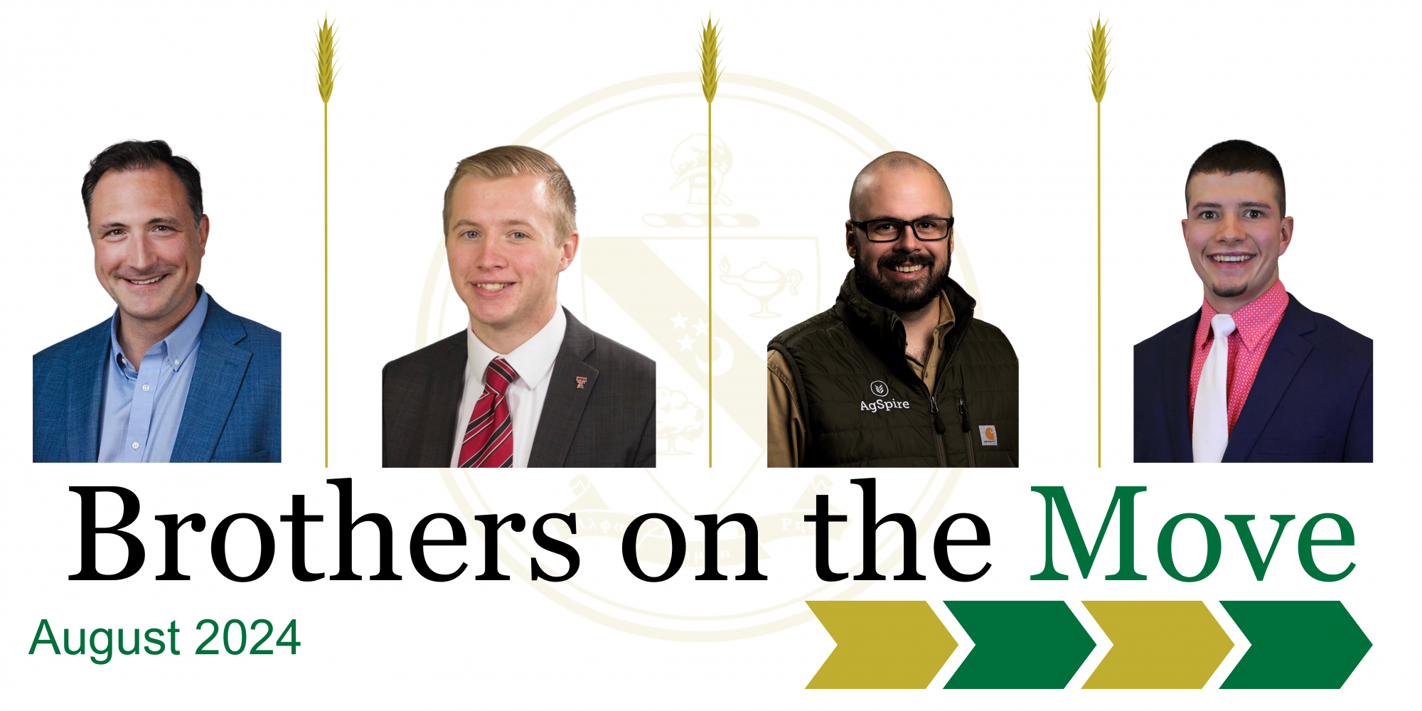 Brother Kirby Cook (Eta Chapter), Brother Cody Cornell (Alpha Tau Chapter), Brother Gordon Spronk (Alpha Phi Chapter) and more have been On The Move in their careers and education. Join us in celebrating their accomplishments and continuing to strive for AGR's Purpose and Values.