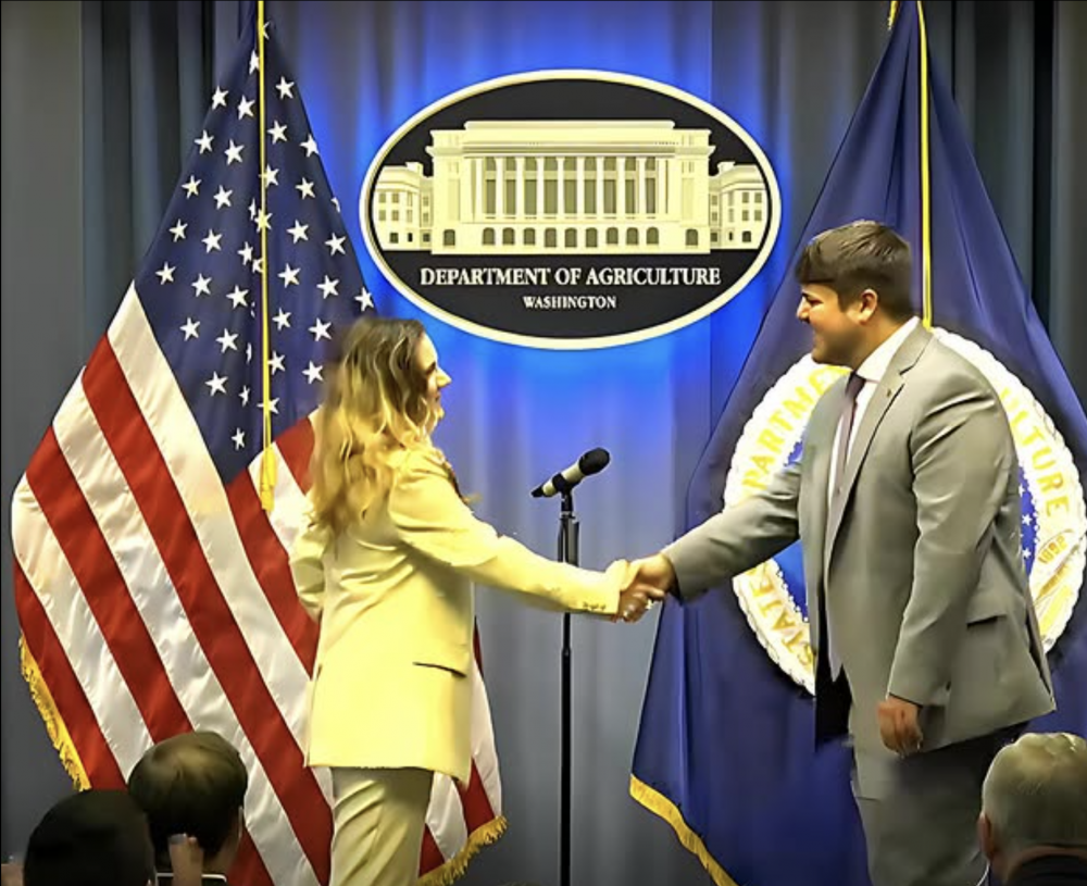 Cody Cornell (right) accepting his appointment as Policy Advisor for the USDA Natural Resources Conservation Service.