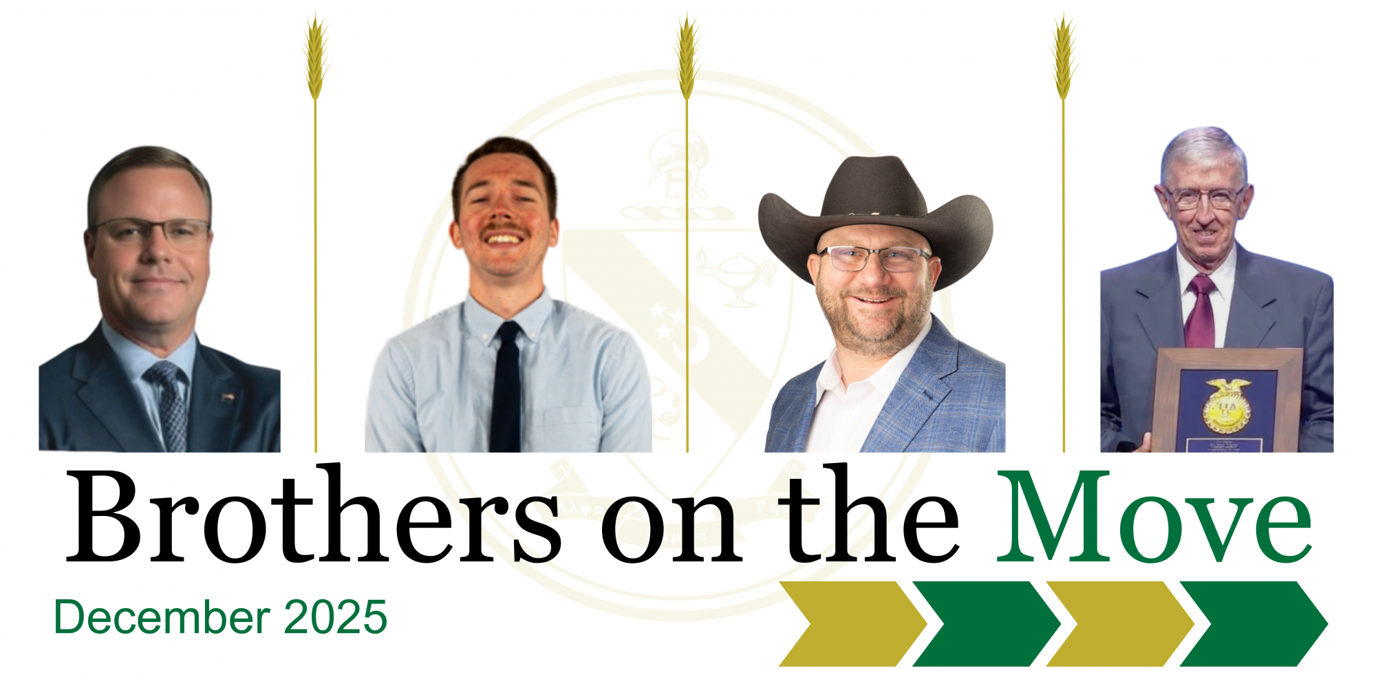 Brothers Jim Hagar (Beta Epsilon Chapter), Brian Brozovic (Beta Nu Chapter), Ben Couture (Omega Chapter), Jerry Wooley (Alpha Iota Chapter) and more have been on the move in their education and careers. See how your brothers are excelling!